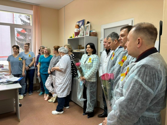 Вместе с заместителем губернатора Виталием Свинцовым, депутатом Людмилой Журавлевой, представителями бизнеса и культуры участники фонда поблагодарили медицинский персонал за их труд и выразил поддержку семьям.